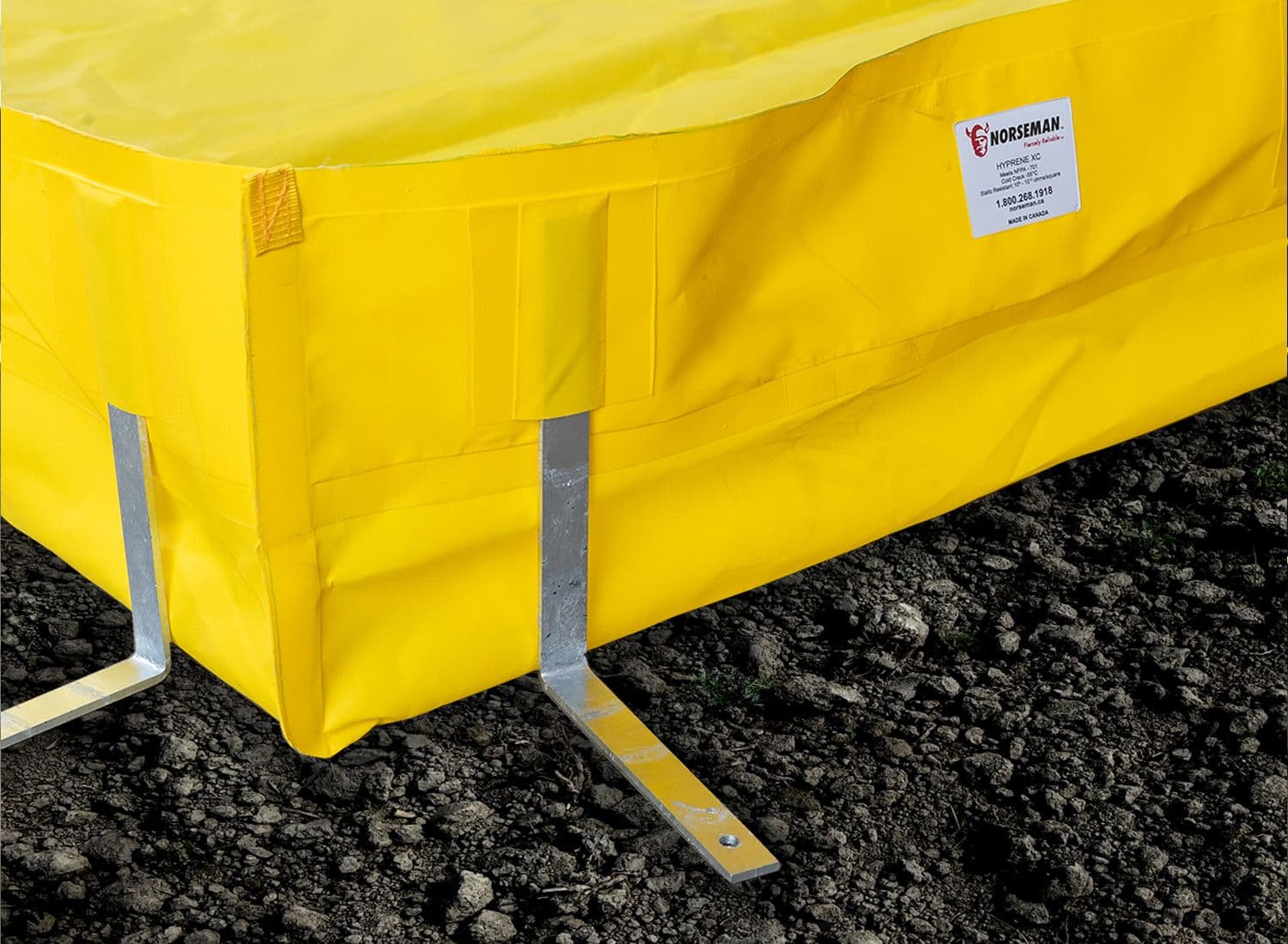 Multiple Hyprene™ fabric types are available to offer the right combination of protection and value for any project. Berms are supported with galvanized metal L-shaped flat bar brackets.