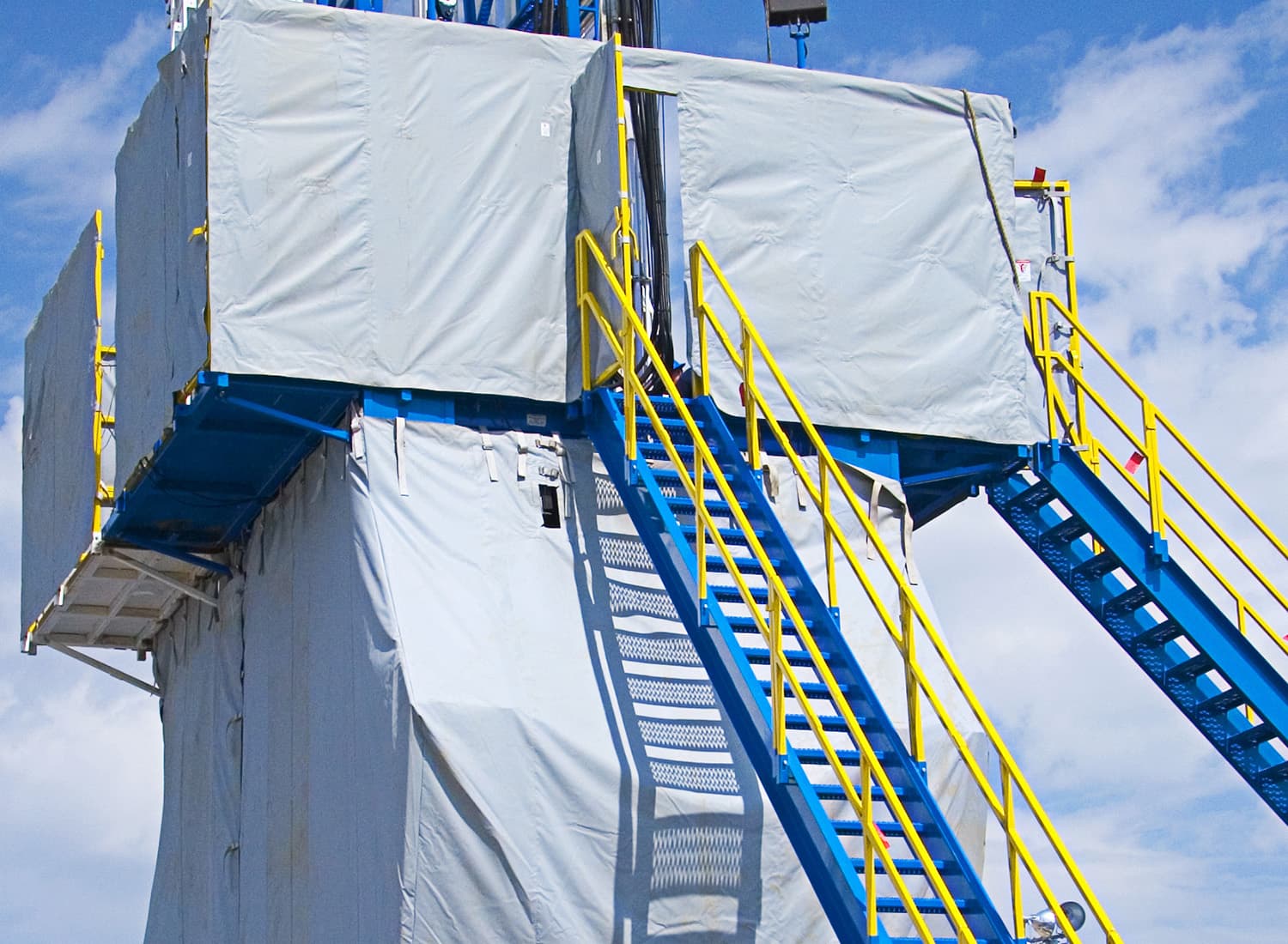 Oil rig enclosures are water-repellent, mildew-resistant, flame resistant, with high operating temperatures to let your team excel in any weather condition.