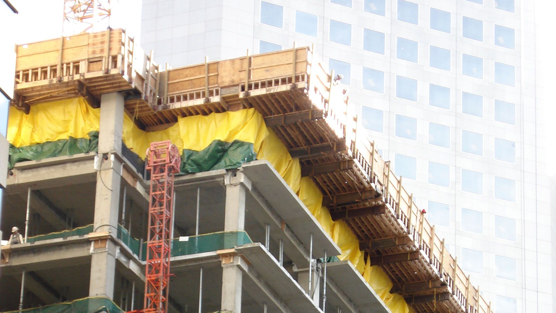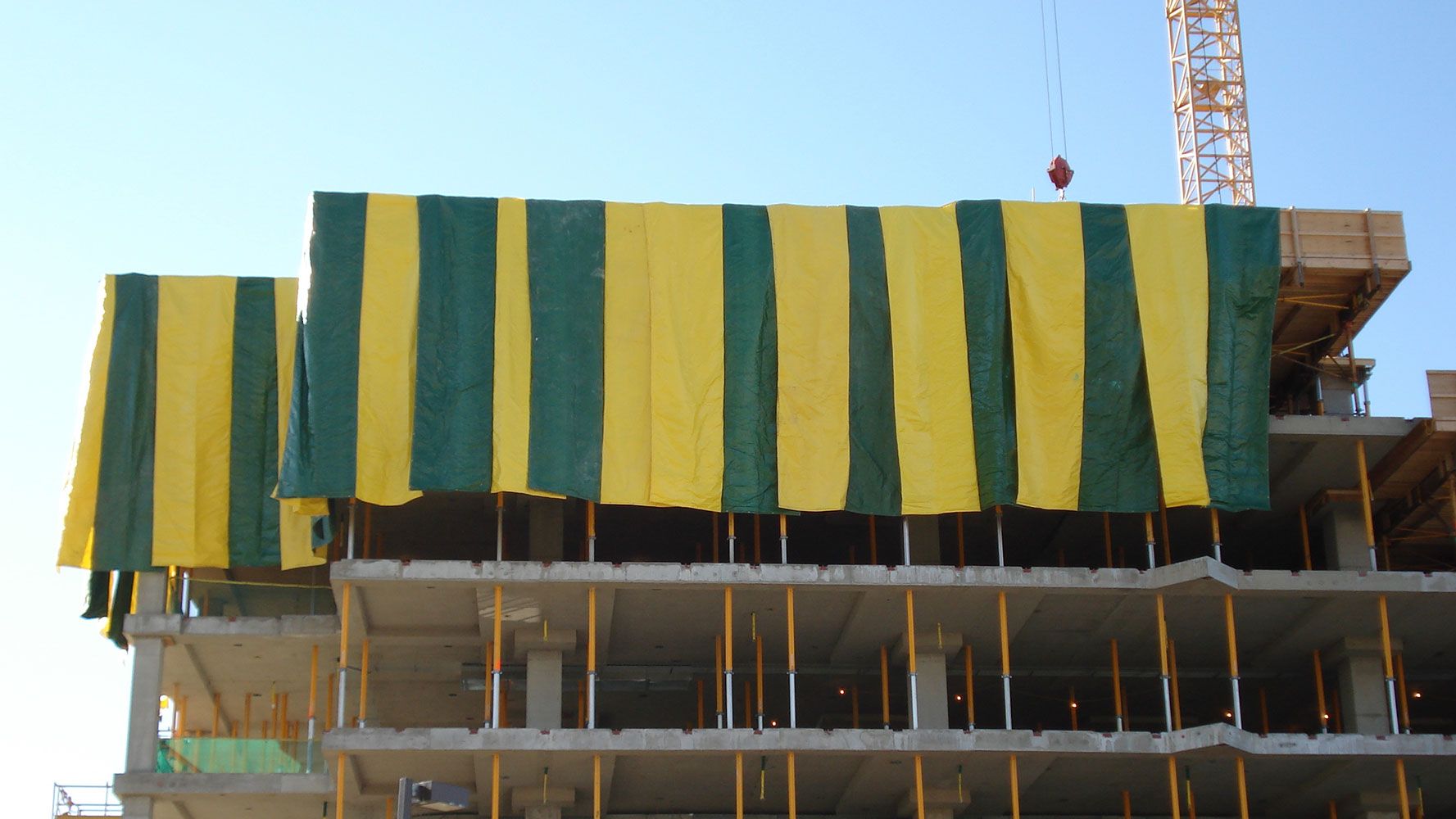 Norseman worked on a solution with the construction company to develop a system that would work year-round, keep their site safe, and operating optimally. The solution was a combination of Interlocking Hoarding Tarps, Debris Netting, and Insulated Blankets. The Interlocking Hoarding Tarp provided a temporary external barrier for the project. The Debris Netting prevented any tools or building materials from falling preventing potential damage to nearby properties or injuries to passersby. Lastly, Norseman provided Insulated Blankets to help keep the worksites at an optimal temperature during the cold winter months.